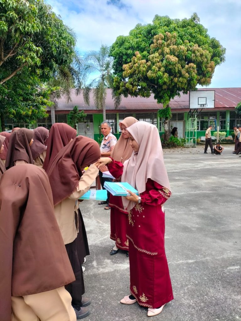 Usai pengarahan serta pengumuman peringkat 1,2 dan 3 terbaik dari masing-masing kelas, seluruh siswa kelas VII, VIII di minta masuk ke dalam kelas untuk menerima raport semester ganjil yang langsung diserahkan oleh wali kelasnya masing-masing.